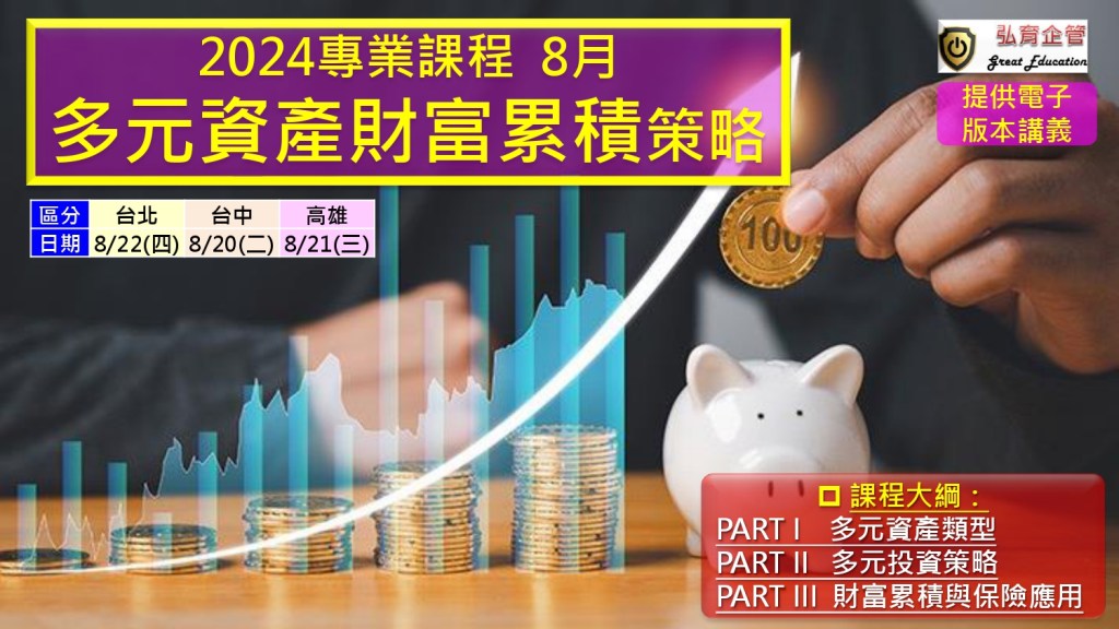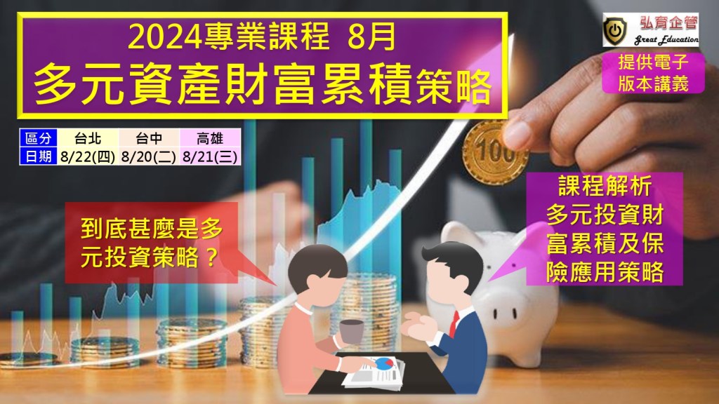 八月份我們來探討,常見的資產種類,財富管理策略,稅務評估,