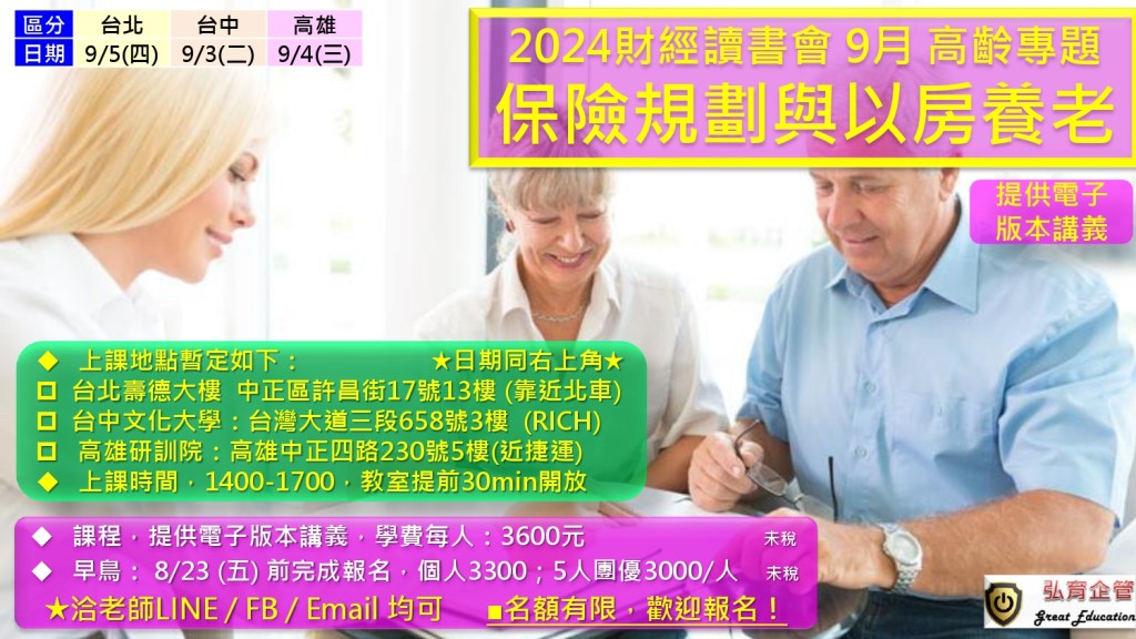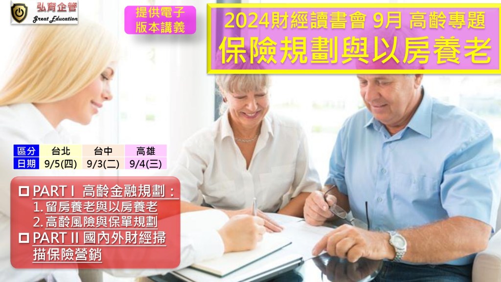 PART I 高齡金融專題 (1.5hr) 主題為:保險規劃與以房養老