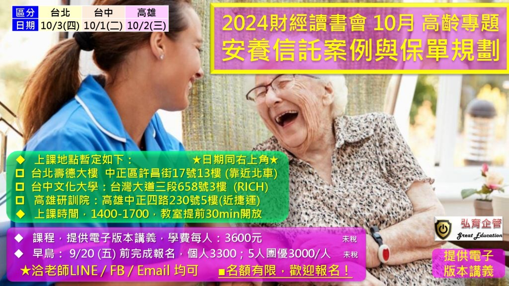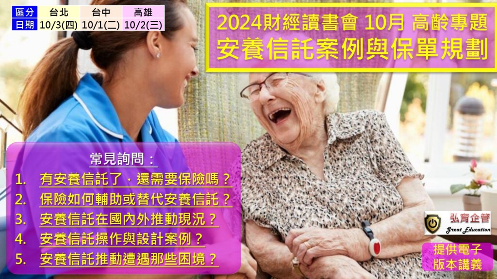 PART I 高齡金融專題 (1.5hr) 主題為:安養信託案例與保單規劃