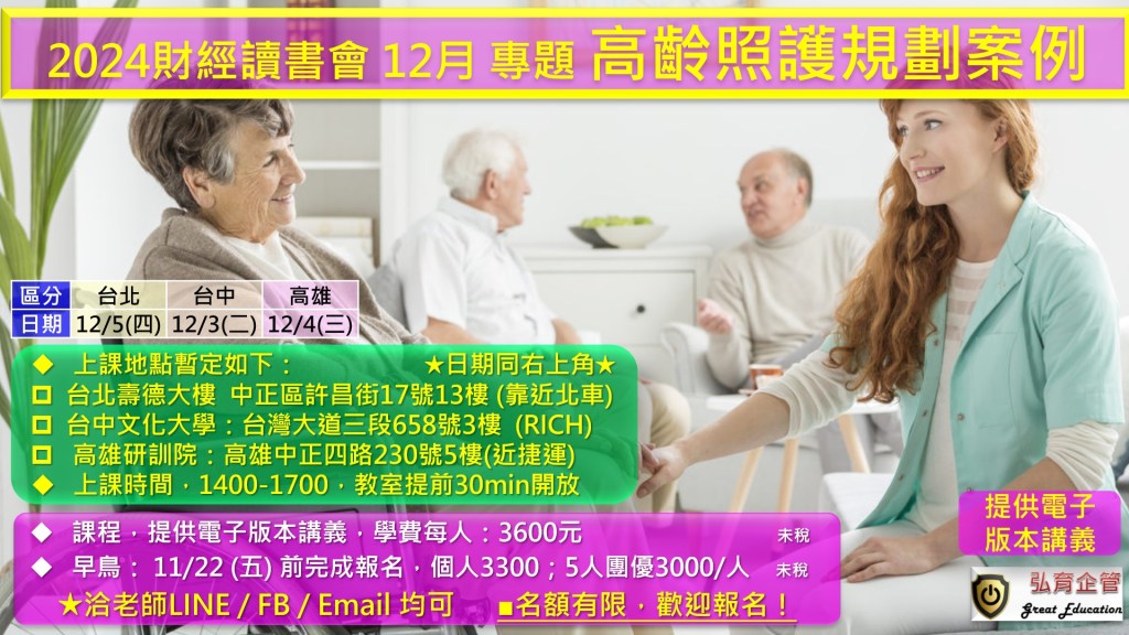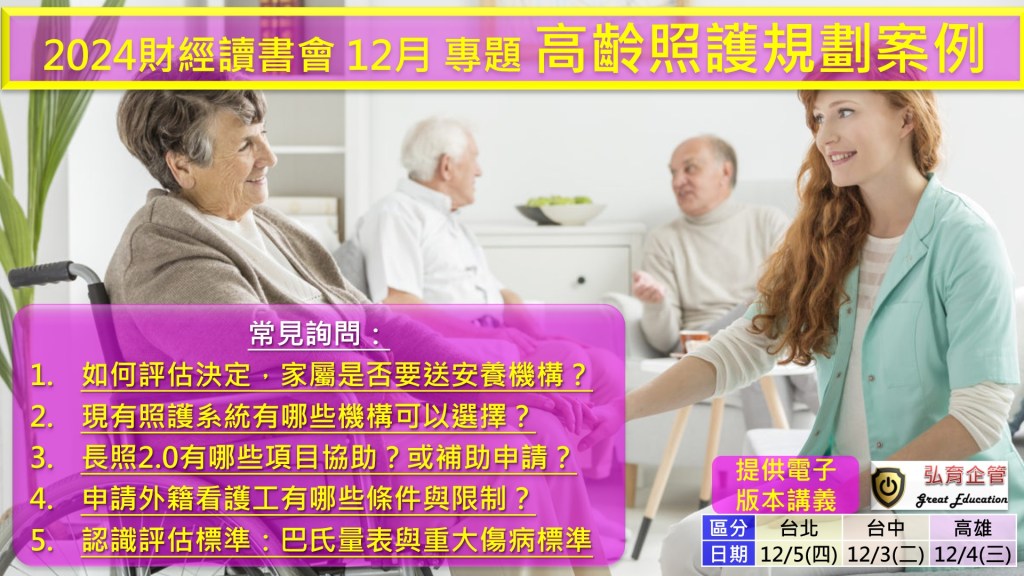 歡迎大家透過本堂課,一起參與進一步了解高齡照護規劃案例應注意的細節,
