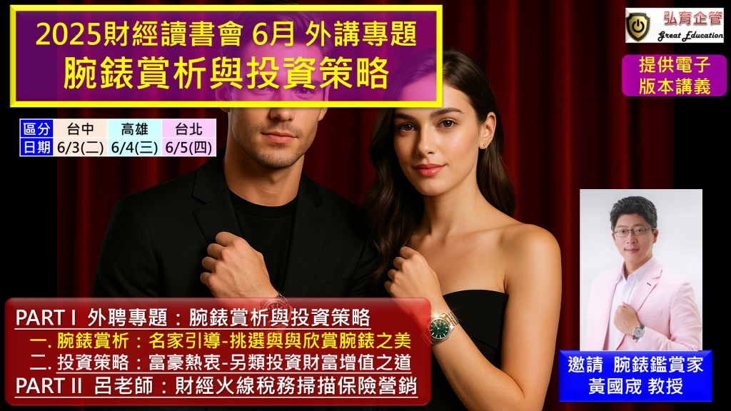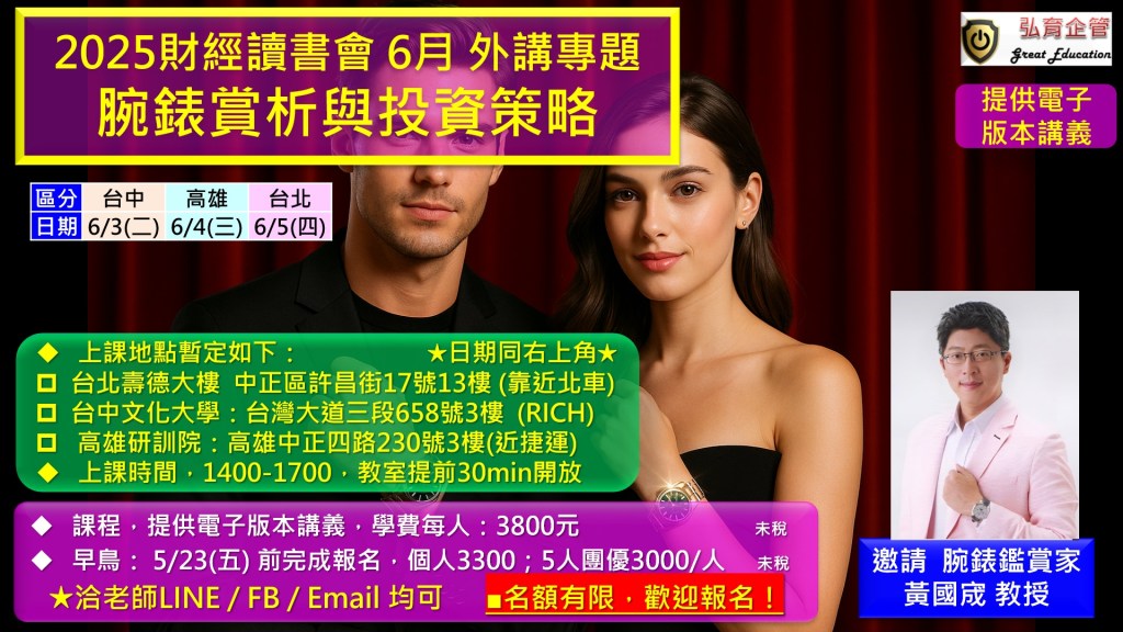 亞洲低調腕錶鑑賞家的黃國宬教授來為大家分享。