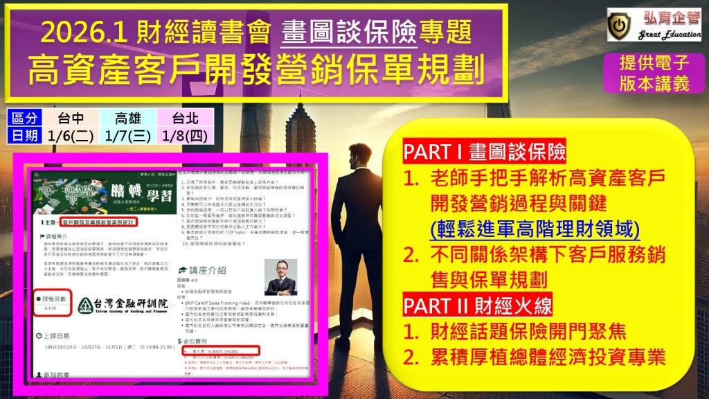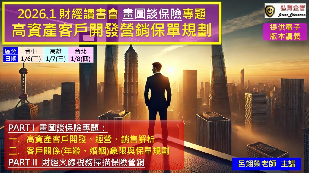 課程前半段:【畫圖談保險】專題,就來聊高資產客戶的開發經營與銷售。