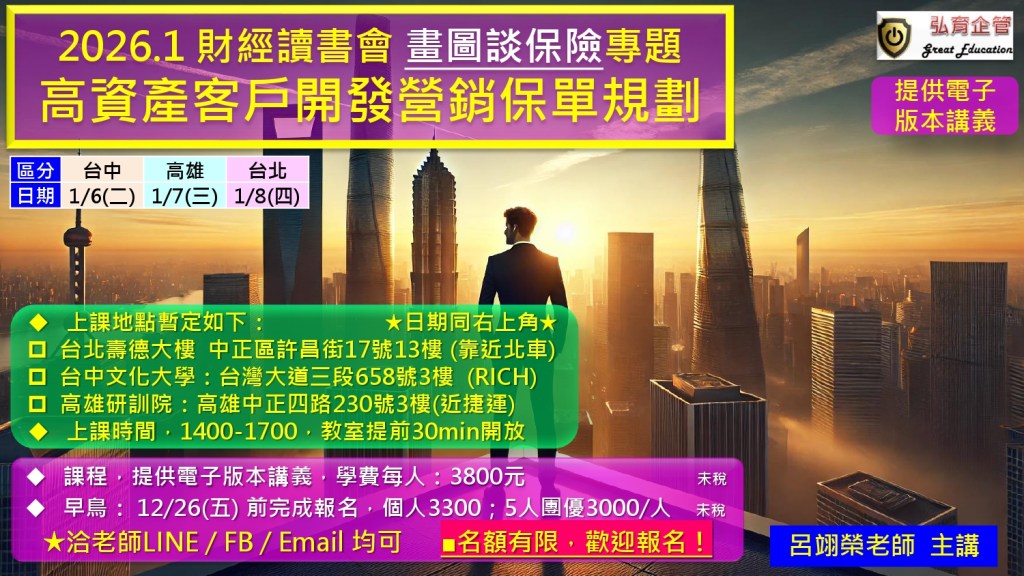 這系列專題過往在各大行庫與保險公司深受歡迎,也是研訓院過往的長開課程。