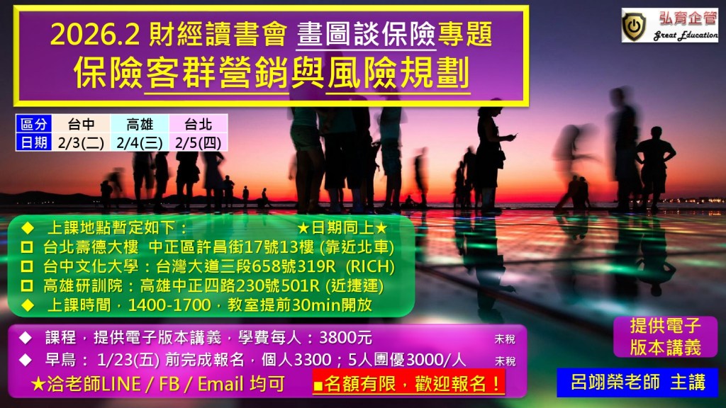 課程前半段,畫圖談保險專題談談:客群營銷與風險規劃