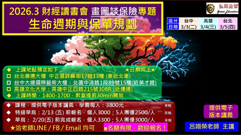 課程前半段,畫圖談保險專題談談:生命歷程與保單規劃