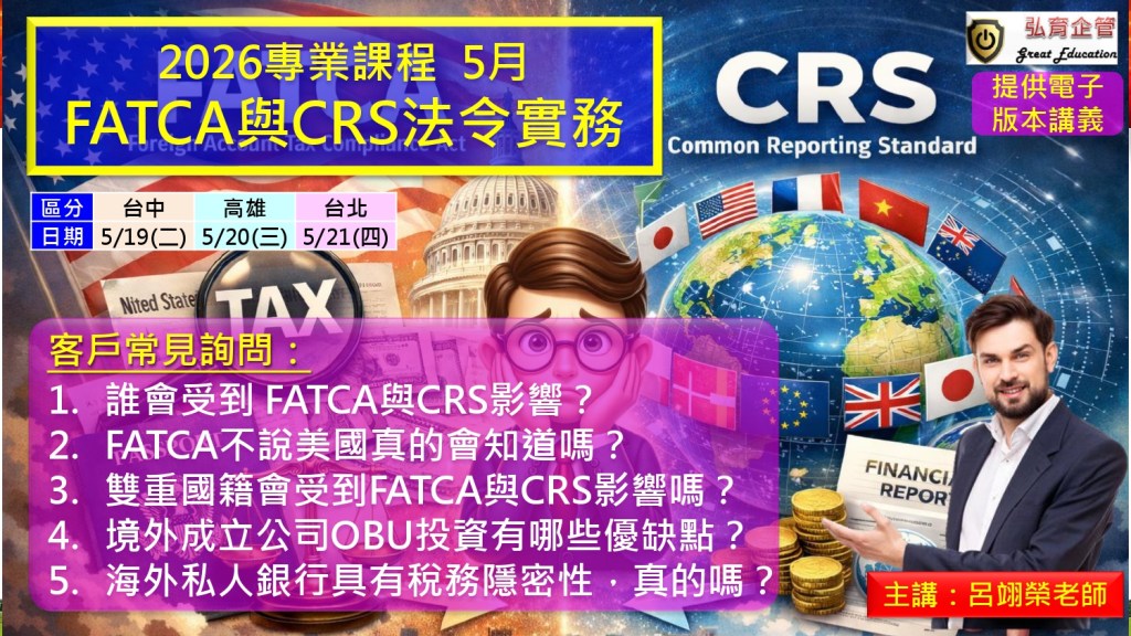 因此FATCA與CRS,成為高資產族群,銀行理財的熱門話題,