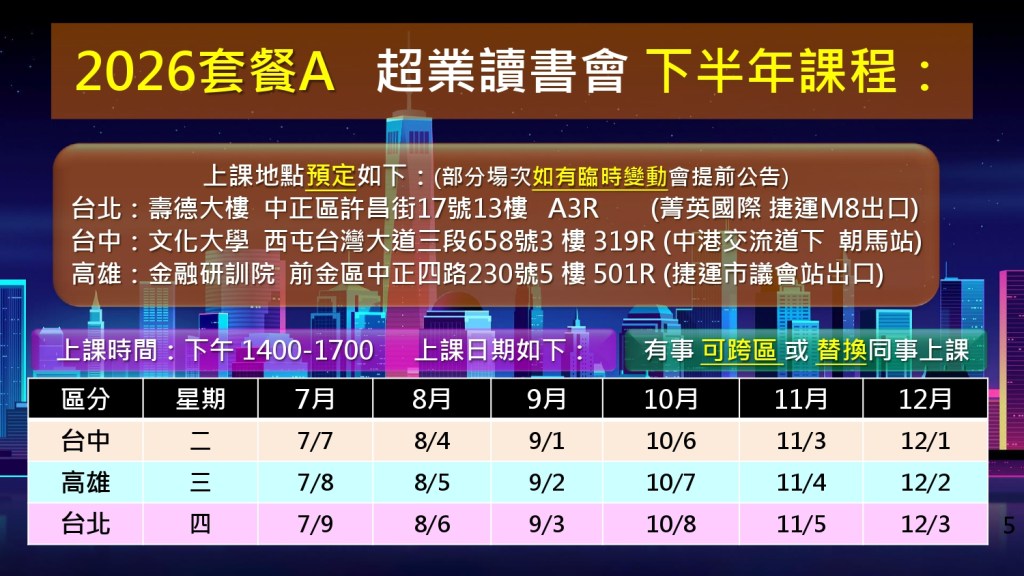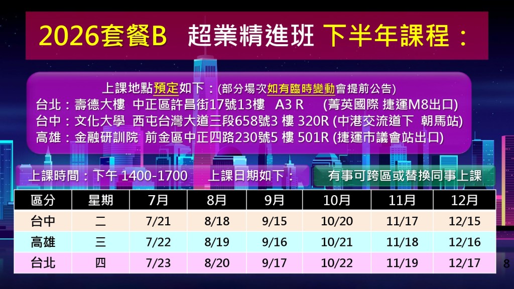 教室座位限制,名額有限,A班各區僅開放2名,B班各區僅開放5名。