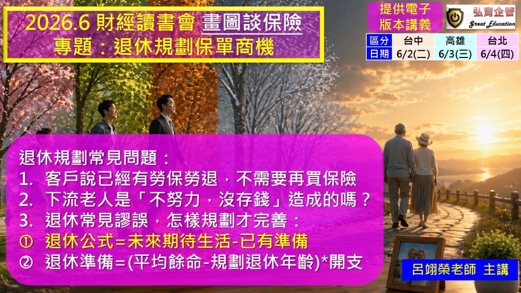 ②退休準備=(平均餘命-規劃退休年齡)*開支